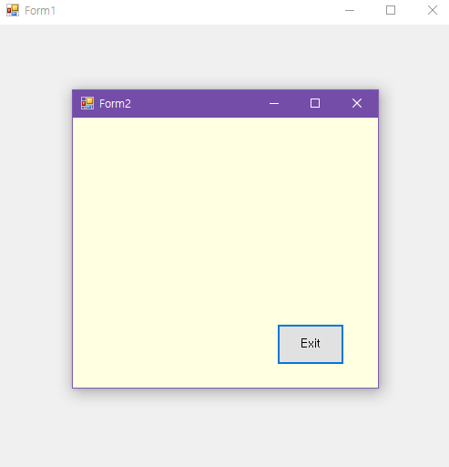 또한 이전 게시물 처럼 form2에서 button을 두고 / button_Click event에 this.Close(); 로