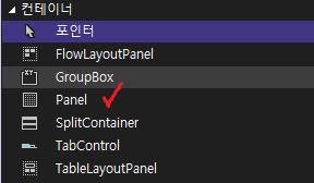 도구상자에서 Panel를 끌어옴. 그리고 Label, ScrollBar 그리고 TextBox까지.