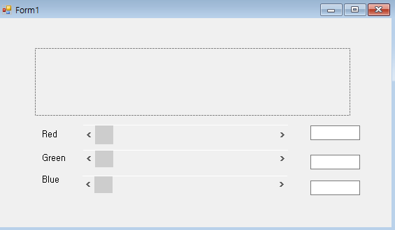 각각의 TextBox는 txtR,txtG,txtB로 이름을 바꾸어주자 + scrollbar도 scrR,scrG,scrB로 바꾸자.