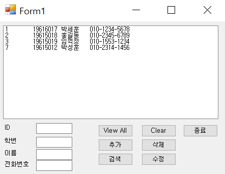 필드명으로는 먼저 ID, SID(학번), SName,Phone 정도면 되겠다.