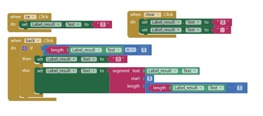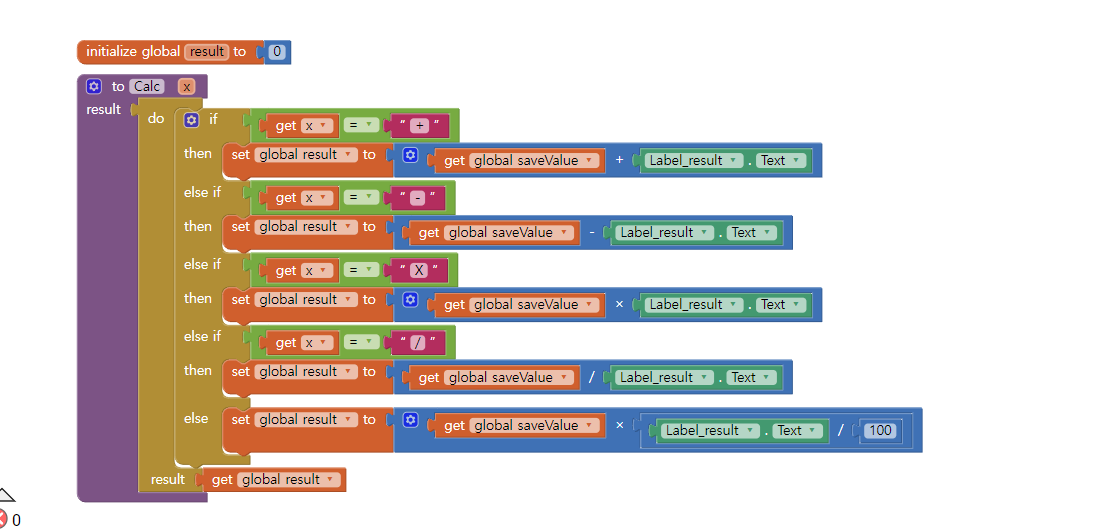 각 버튼을 클릭하면 상단의 프로시저를 호출하는 것이다. 이것으로 숫자패드는 구현 끝이다.