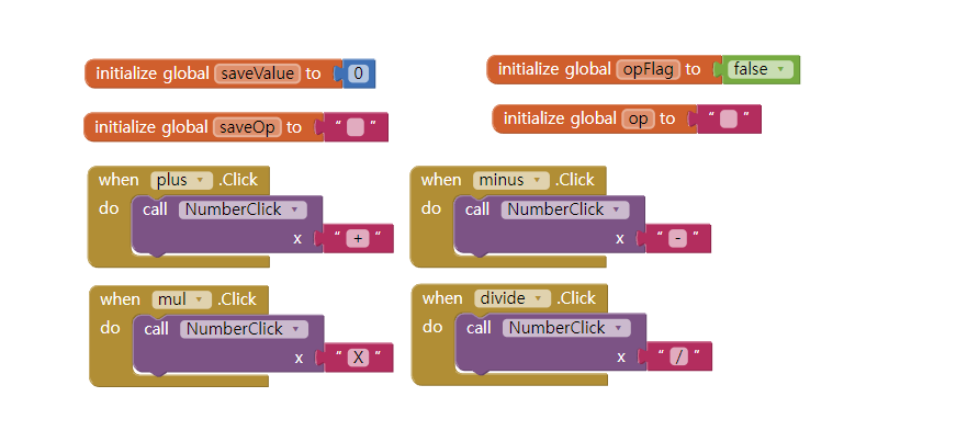 +,-,X,/ 에 대한 버튼 구현 파트이다.