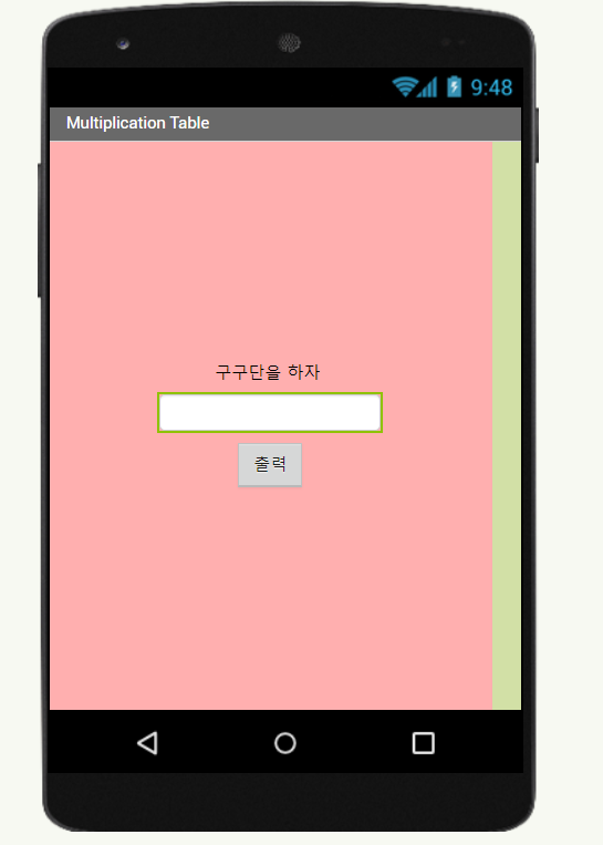 - Screen2는 위의 사진처럼 몇단을 출력하는지를 나타내는 Label1, 가로로 선을 하나 그어줄수있는 Label2, 구구단의 결과를 출력하는 Label3가 필요하다.
