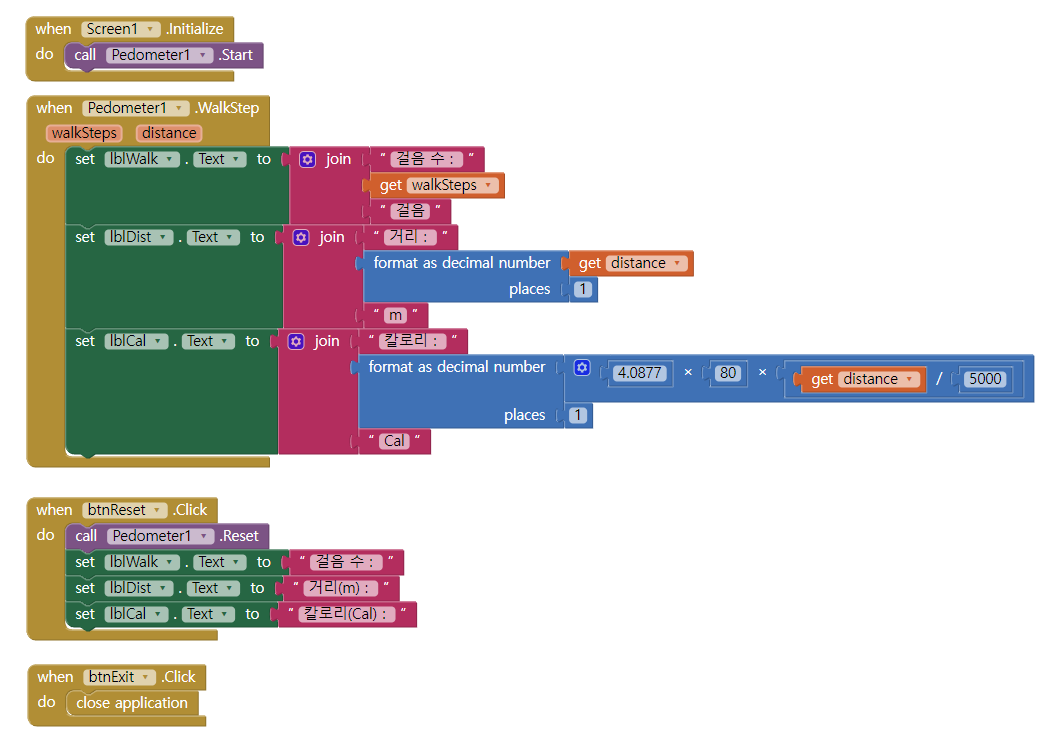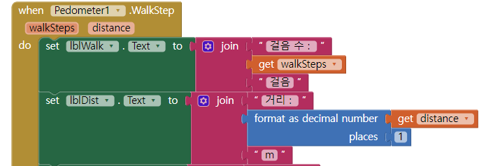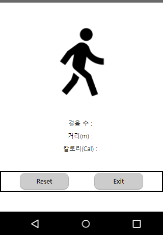 Pedometer 센서가 걸음을 감지하면 걸음수와 거리값을 받아서 화면에 출력한다.