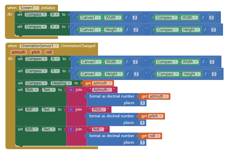 *Azimuth : 방위각 - 북쪽을 기준으로 시계방향으로 스마트폰이 가르치는 각도