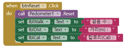 Reset버튼이 클릭되면 각 Label들의 값을 초기화 해준다.