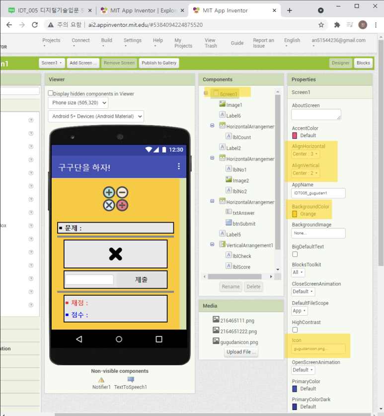 1) 구글 로그인 & 앱 인벤터 실행