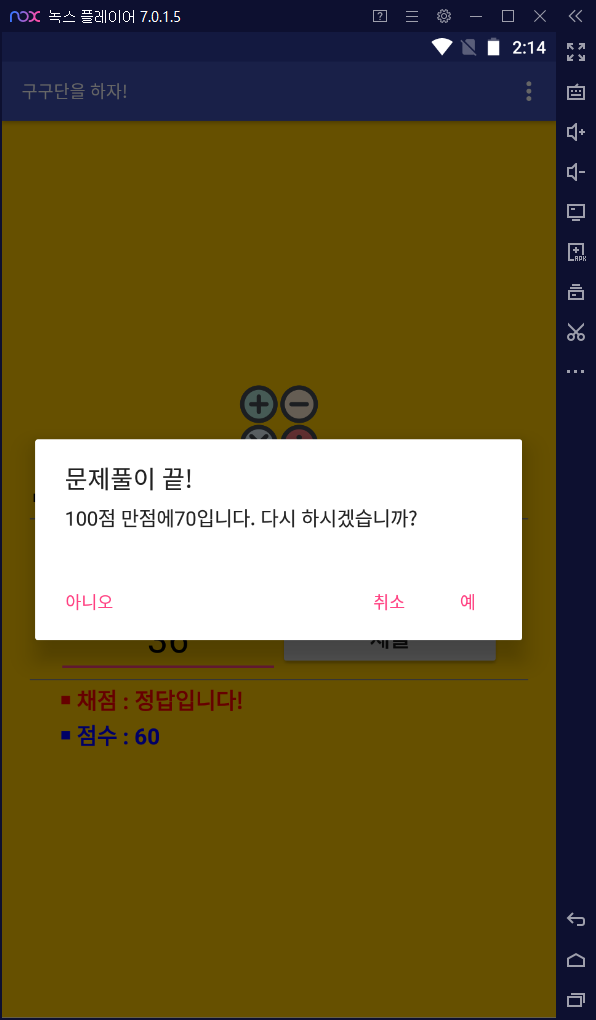 -100점 만점에 (global score 값)입니다. 다시 하겠습니까?