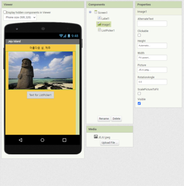 ListPicker에서 선택된 장소를 구글맵을 통해 보여준다.