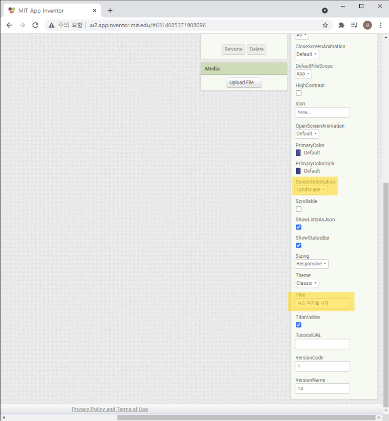 -ScreenOrientation 변경: Landscape -> 가로로 보이기 위함