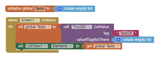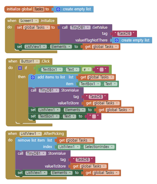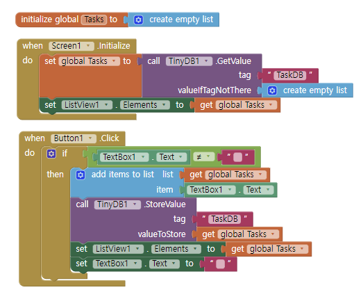-TextBox에 할 일을 쓰고 " 할 일 추가 " 버튼을 클릭하면 TextBox의 내용을 Tasks 리스트에 추가하고 새 항목이 추가된 Tasks 리스트를 TinyDB에 저장하기