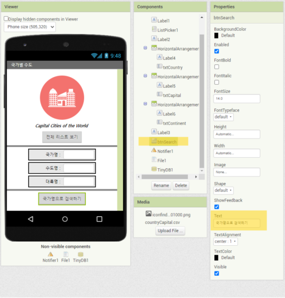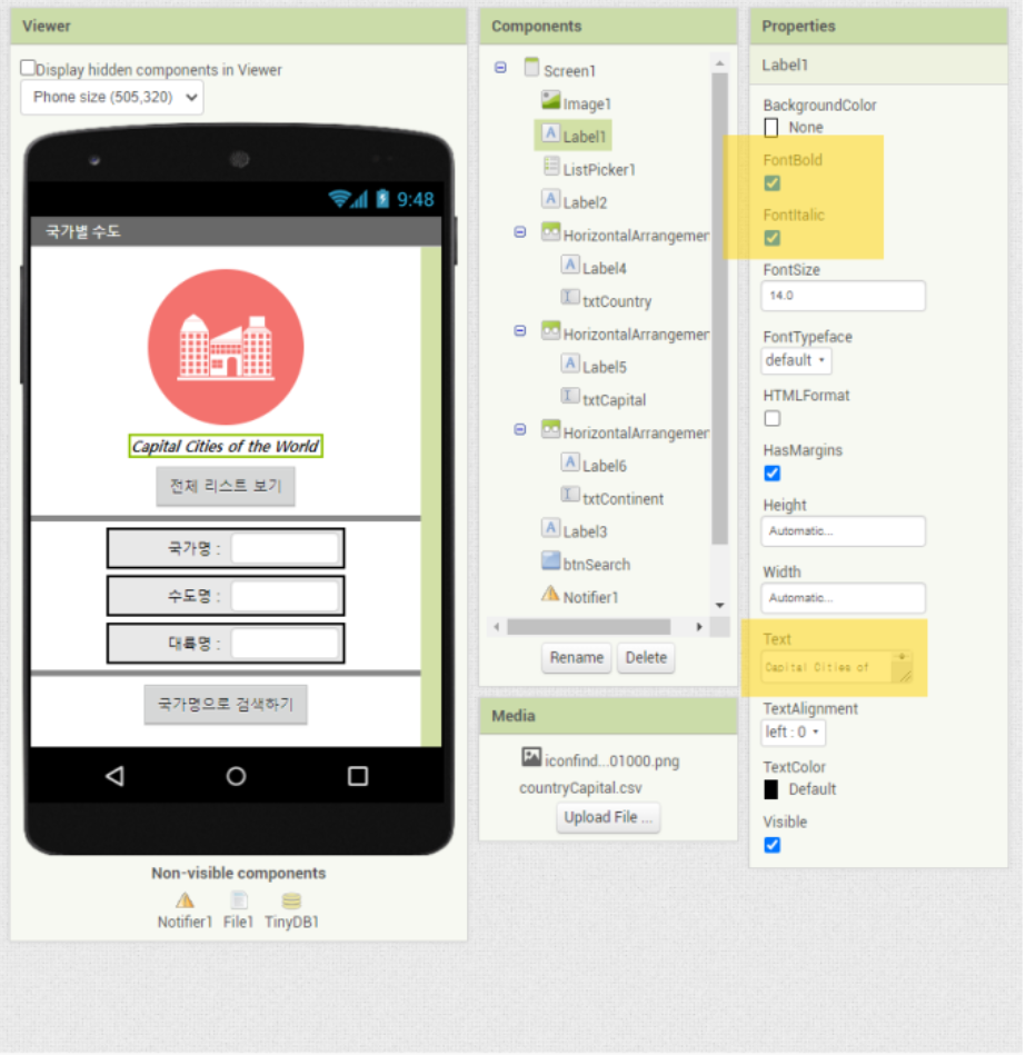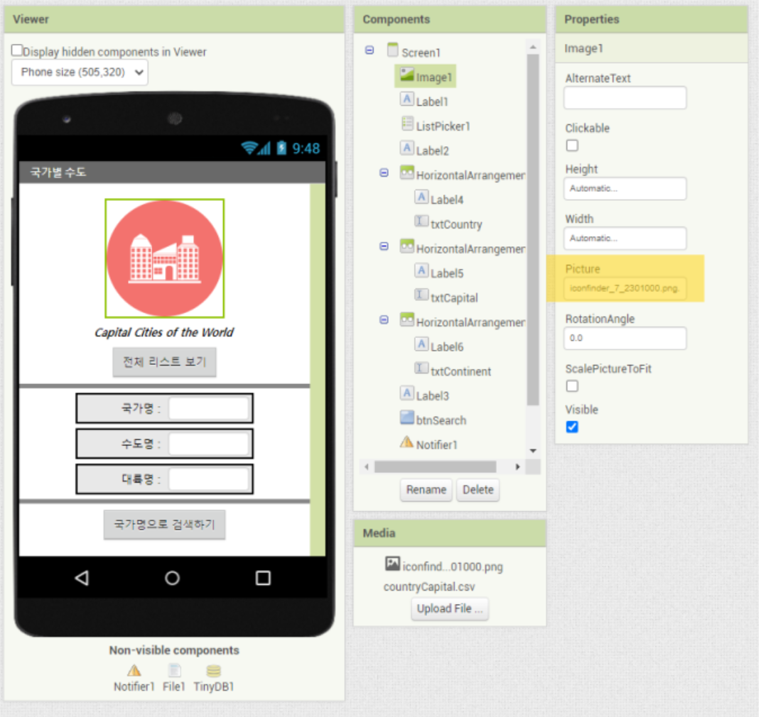 ListPicker의 Element 요소들이 cocaco가 되도록 하기, FileToDB를 불러오기