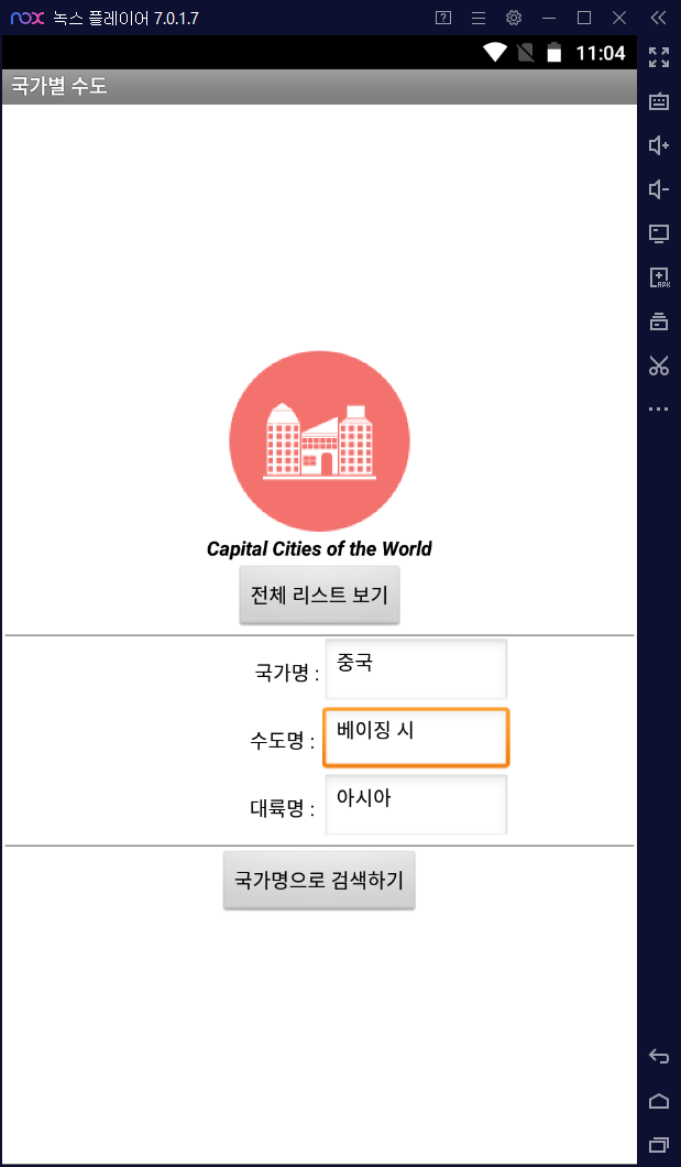 Text 변경 : 국가명 : / 수도명 : / 대륙명 :