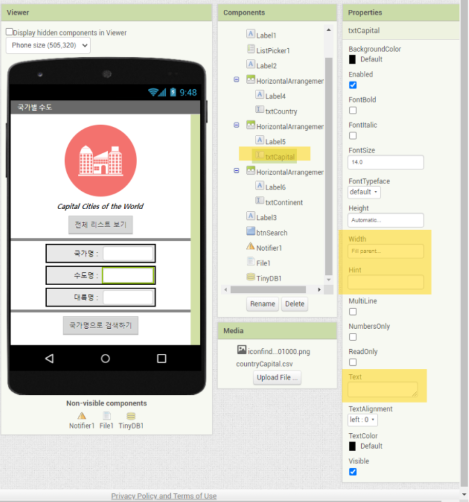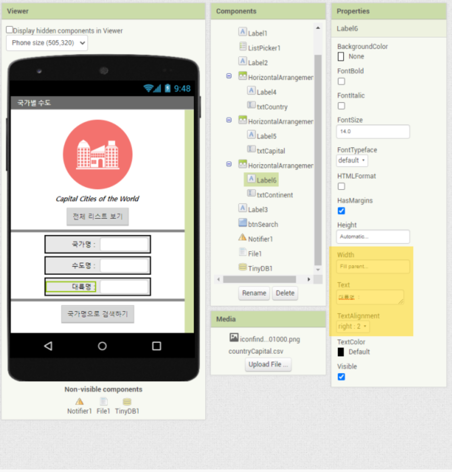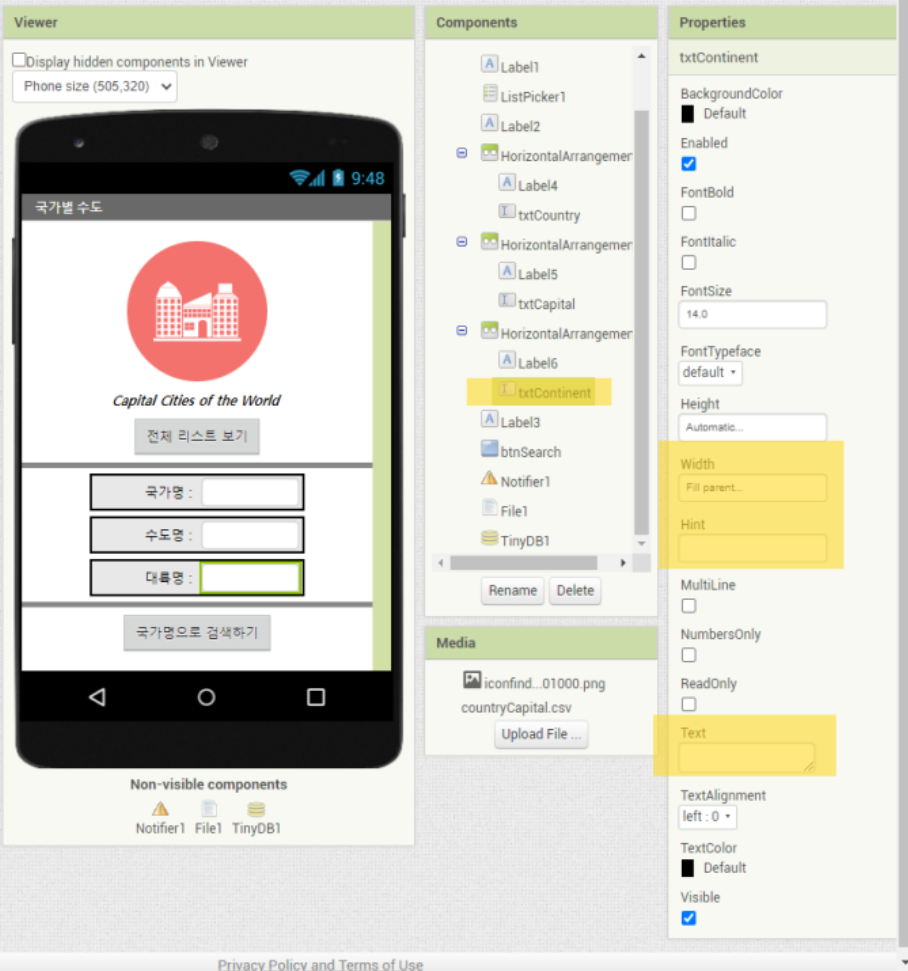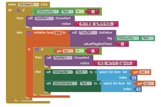 그렇지 않다면, txtCapital은 ccc의 두번째 값, txtContinent은 ccc의 세번째 값으로 불러오기