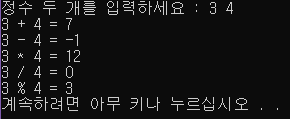 ※ '/'의 경우 '몫'을 반환하고 '%'의 경우 '나머지'를 반환함.